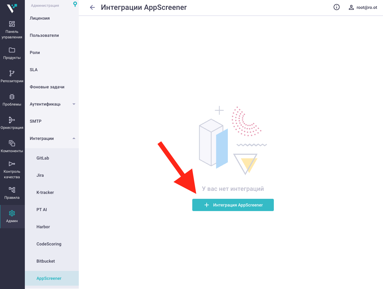 Для настройки интеграции вам нужно перейти в раздел Администратор → Интеграции → AppScreener