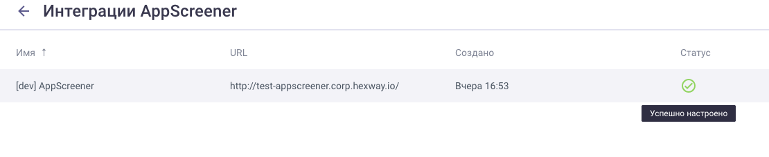 После того как вы заполнили все поля и сохранили интеграцию, вы сможете увидеть статус настроенной интеграции