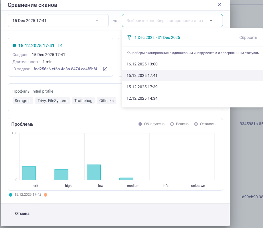 Далее в открывшемся окне выбрать сканирование, с которым будет производиться сравнение